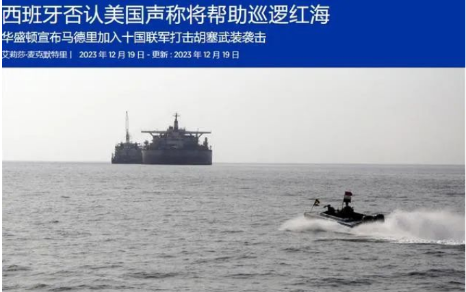 在美国宣布为了保护过境红海的船只,要组建多国部队时,最先站出来“辟谣”的竟然是西班牙!该国明确表示,并没有决定加入美方组建的多国巡逻部队。