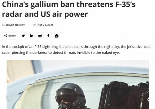 自2023年12月,国内对镓制品出口管制以来,大家就一直很好奇,这项管制对美国军工产业的真实影响。4月24日,欧洲“Bulgarian Military”网站援引美国官方多家机构数据,仔细分析了镓制品管制的影响,最终得出结论——“镓禁令已经威胁到F-35,甚至是整个美国空中力量的发展”。