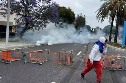 抗议行动从6日延续至8日,并在8日中午达到高峰。美国加利福尼亚州洛杉矶市中心联邦执法机构门前的抗议者与部署在该地的国民警卫队人员发生冲突。美国军方说,当天共有300名国民警卫队人员依照指令进驻洛杉矶地区。