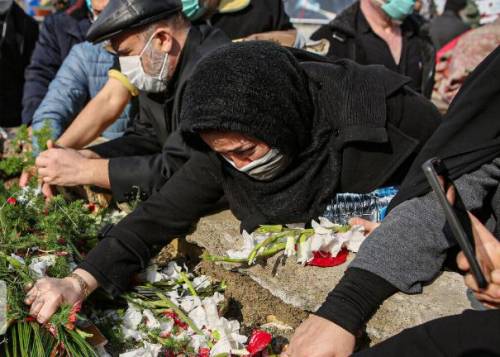 在国葬现场,数万民众围绕着运输遗体的车辆痛哭流涕、献花,并用衣服擦拭棺椁,表达他们对牺牲者的敬仰与怀念。在整整60口棺木里,有三十多名伊朗革命卫队的高级指挥官。