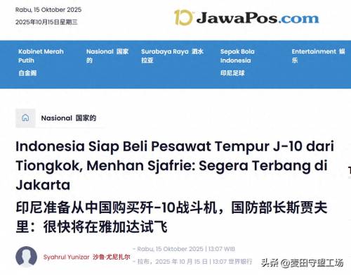 外媒头版头条!印尼防长确定采购中国战机,歼-10出口第四单稳了