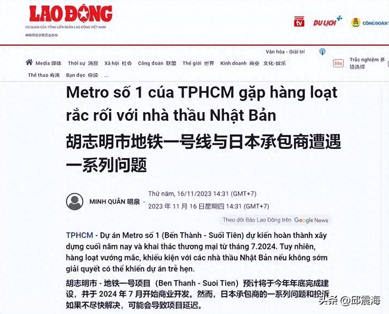 越南的《劳动新闻》报道了这件事情,直接指出错在日本承包商。