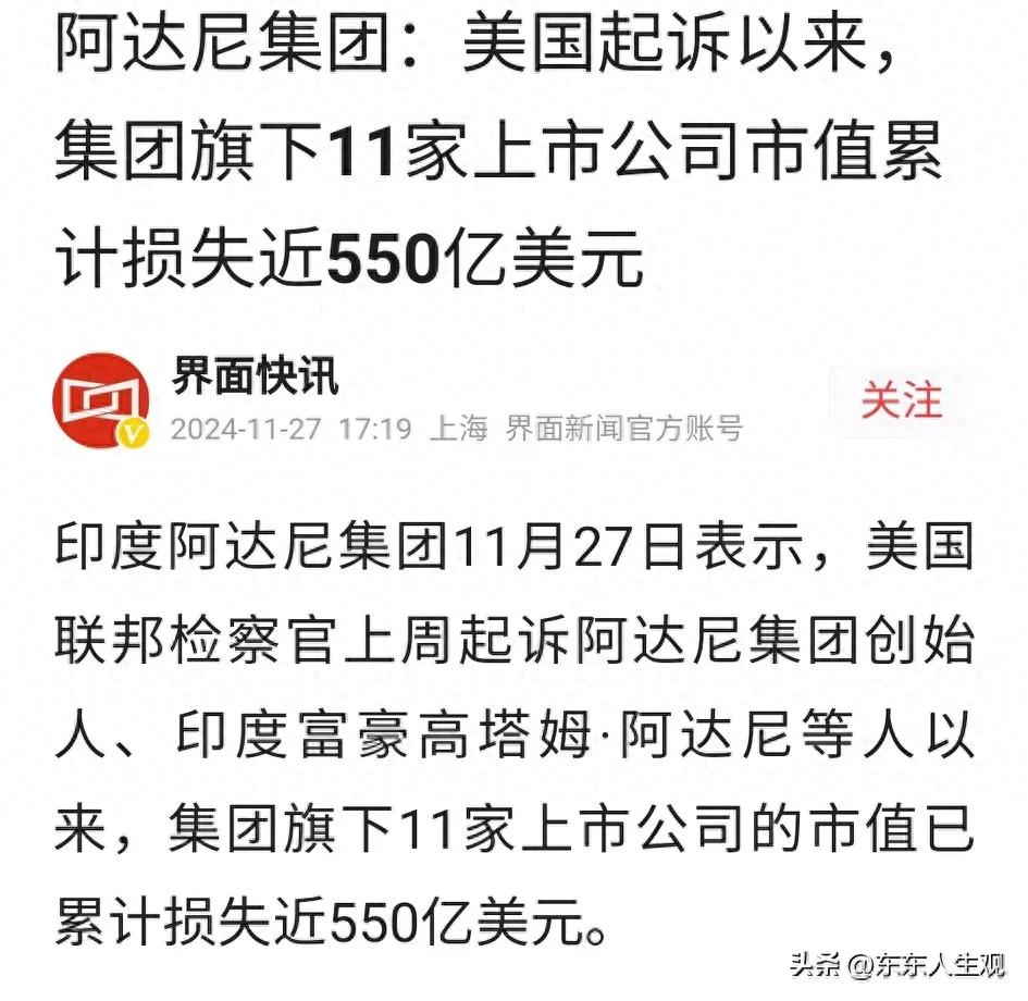 ★ 印度十大财团之一的阿达尼被美国地方法院起诉后,短短十天,阿达尼旗下11家上市公司市值就消失了550亿美元。