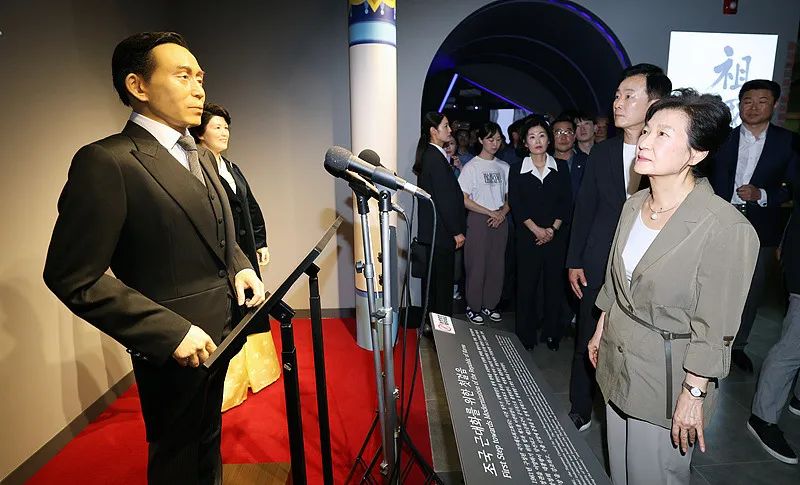 当地时间2023年8月15日,韩国龟尾,韩国前总统朴槿惠参观其父朴正熙的历史资料馆展示室。视觉中国