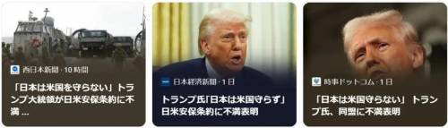 雅虎头版新闻:“日本不用保卫美国”特朗普对同盟关系表明不满