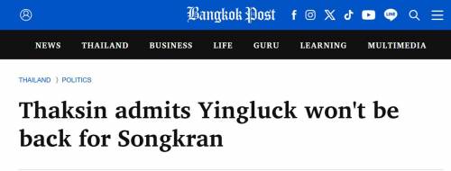 他信日前对外承认,英拉无法按照此前的计划,在今年4月返回泰国参加泼水节庆祝活动,并直言现在让英拉回国并不合适。