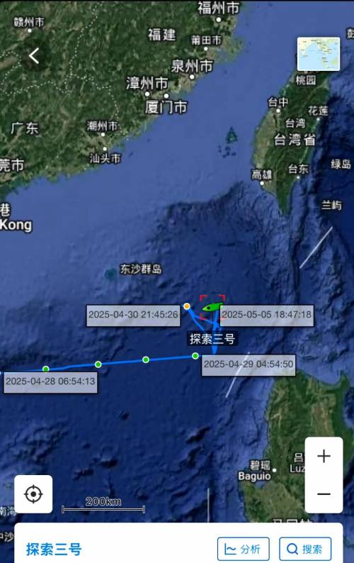 不过很显然,菲律宾方面的这种操作,中国的科考船根本就没有放在心上,从下面的这张航行轨迹图来看,探索3号一直在原定的海域工作,并没有出现明显的被驱逐而远离的动作。
