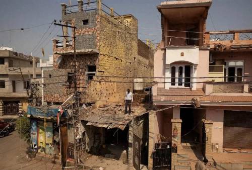 ▲ 5 月 10 日,在巴基斯坦对印度的军事行动之后,一名男子站在查谟雷哈里一栋受损房屋的屋顶废墟中。(图源:外媒)