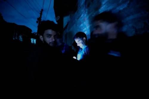 ▲ 在印控克什米尔斯利那加,一名男子停电期间用手机查看实时新闻。(图源:新华社)