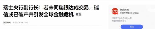 这不仅仅是一家银行的破产,更是瑞士金融体系信誉的一次集体破产,而即便是接盘的瑞银,也未能幸免。