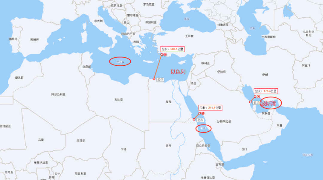 接壤以色列的地中海区域,海峡宽度仅600公里。