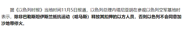 以色列总理内塔尼亚胡也终于松口了,以前连美国的面子都不给,死活不肯停火。