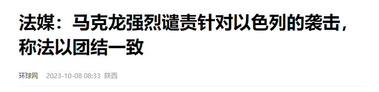 然后,10月8号的时候,法国总统马克龙,就立刻发表了声明,称法国和以色列团结一致。