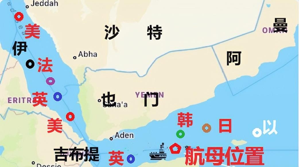 这是各国军舰在也门附近的实时分布图。