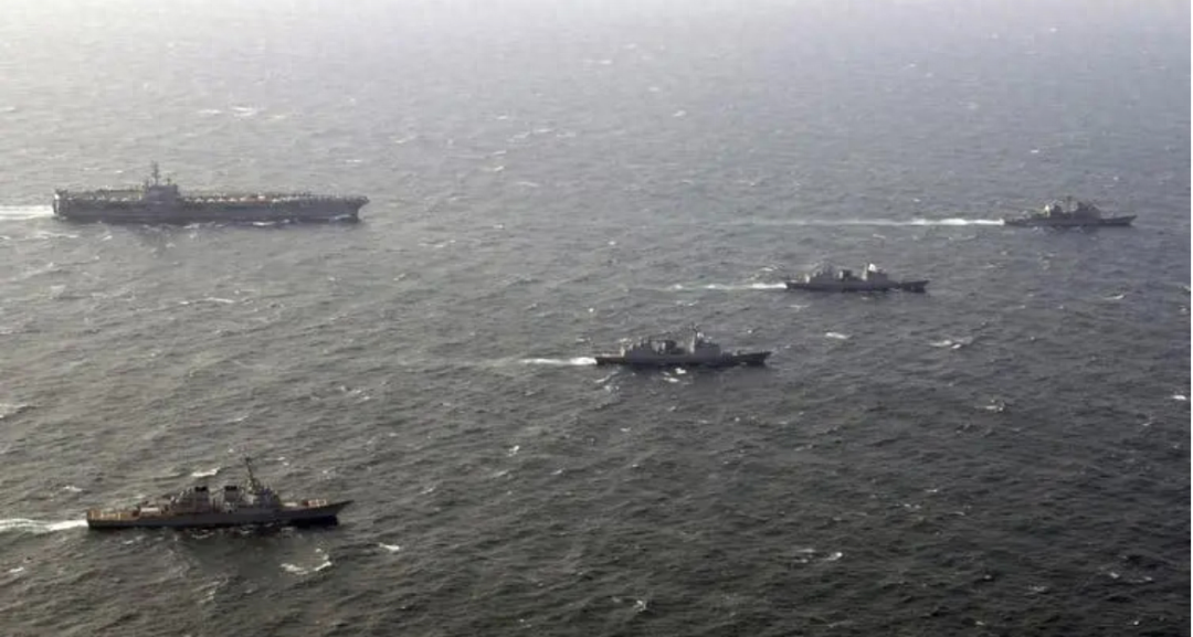 简单来说,就是:美国和它小弟们的军舰,基本都已经处于战斗位置了!现在的消息是:加上其它美国凑的小国,比如说巴林、塞舌尔之类的,号称是“十国联军”