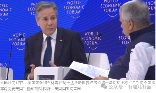 布林肯在达沃斯称“几乎每个国家都说需要美国”。