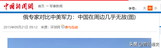 信息来源:2015年9月21日发表于中国新闻网——《俄专家对比中美军力:中国在周边几乎无敌(图)》
