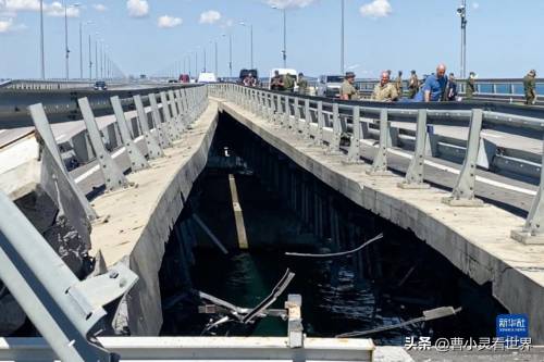 结果这不到48小时,6月3日克里米亚大桥又被炸了,直接是1100公斤的TNT炸药绑在大桥水下支撑结构上引爆,导致整个大桥处在「紧急危险状态」。
