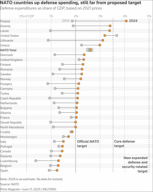 不过,就像伊朗核设施“已被彻底摧毁”的说法经不起验证,北约成员的5%承诺,也更多像是一种试算表游戏,经不起细究。