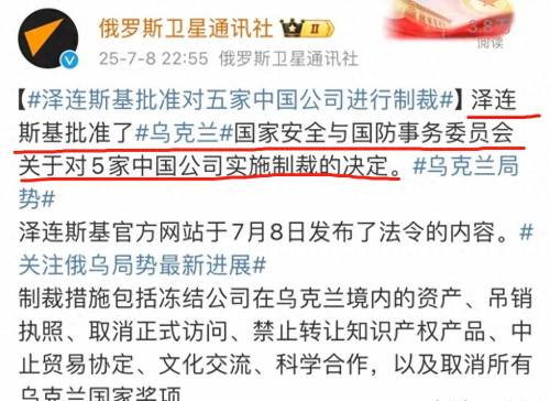 没想到,得了美国再次有意军援的信号后,泽连斯基开始下狠手,悍然签署制裁5家中国企业,丝毫不留任何余地。