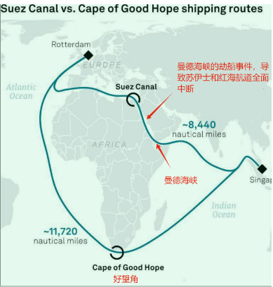 同时,欧洲另两大航运公司,世界最大的集装箱航运公司地中海航运(MSC)和目前世界排名第三的达飞轮船CMA CGM,也于上周六决定,暂停经过红海/苏伊士运河航线的船舶。