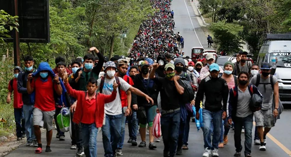 大批当地活不下去的老百姓,带着点吃的,一路往北,穿过高山、草地、热带丛林什么的,一路浩浩荡荡,冲向美国!