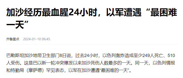 然后以色列方面宣布:1月8日,以军在加沙遭遇到了“最困难的一天”。