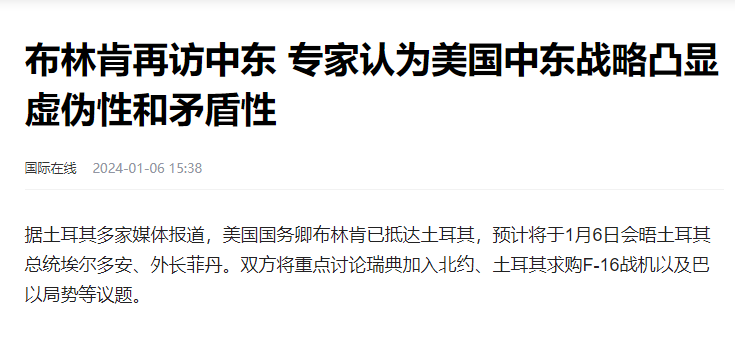既然美国人想这么干,那布林肯到中东之后,就得受另一头的气了!