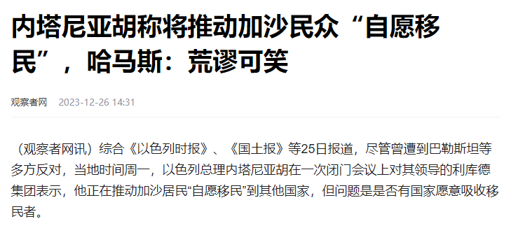 加沙人还是住在加沙,哪儿也不去,但哈马斯的武装肯定得解除,这个组织也肯定搞掉,否则就对以色列构成长期威胁了。