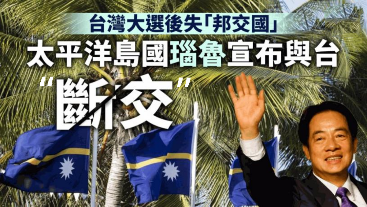 据多家媒体报道,1月15日,也就是赖清德胜选仅仅两天之后,太平洋岛国瑙鲁就宣布和台湾当局“断交”。