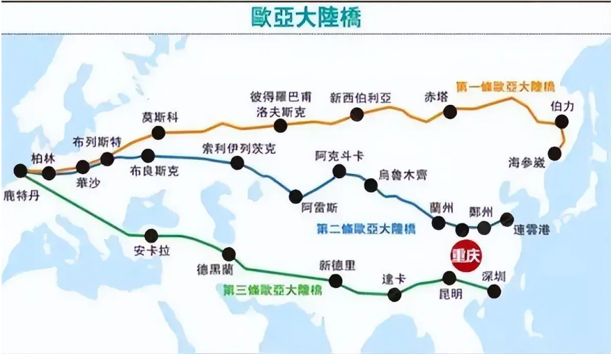 目前中欧班列的经典路线,主要走的是北线的俄罗斯和中线的哈萨克斯坦这两条线路。