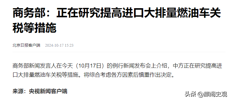 面对欧盟的步步紧逼,中国并没有选择“躺平任嘲”,而是采取了强硬的反制措施,中国商务部宣布,正在研究提高进口大排量燃油车关税等措施,以应对欧盟的关税反制。