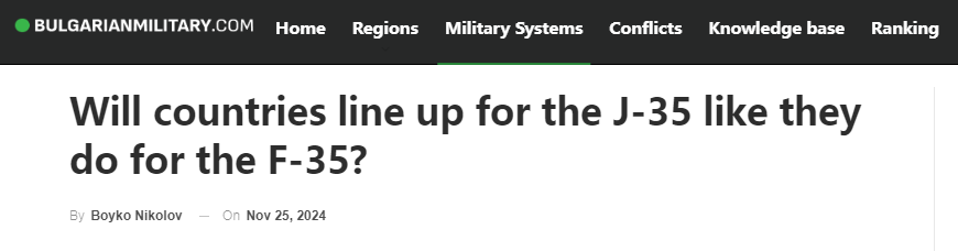 “保加利亚军事”网站的讨论,更直指F-35的“命根子”——国际军贸市场。报道称,F-35在销售、作战部署和全球影响力方面树立了前所未有的标准。“但随着歼-35的推出,中国似乎准备挑战美国的主导地位,为那些寻求尖端空中能力而不依赖美国技术或地缘政治联盟的国家提供了另一种选择。”